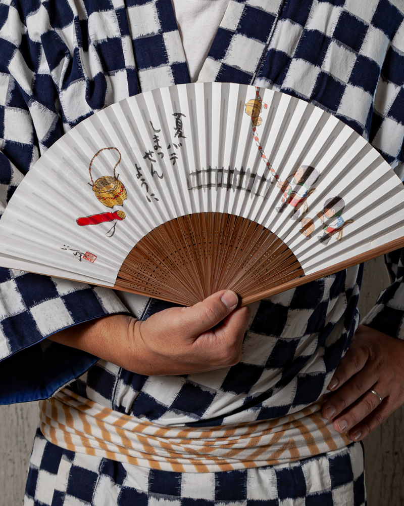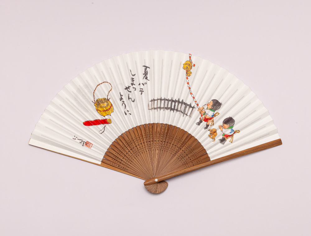 無事に山笠に出て、夏バテしないように祈願している子供たちの絵柄です。